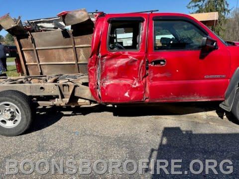 On April 8, shortly before 4:00 p.m., the on-duty DES crew observed a collision in front of Station 8 involving a pickup truck and a farm tractor.